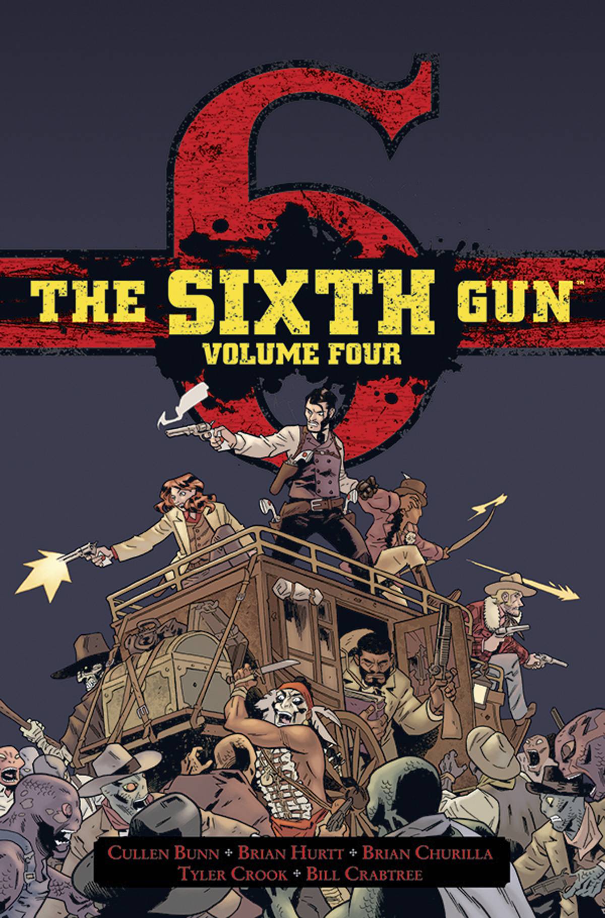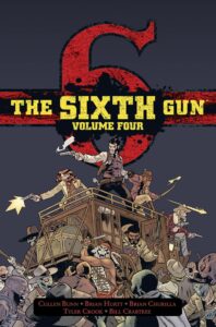 The Sixth Gun Volume Four Hardcover, collects issues 36 through 41, featuring the Not The Bullet, But The Fall story arc of the ongoing series by Cullen Bunn, Brian Hurtt, Tyler Crook, and Bill Crabtree, as well as the five issue spin-off mini-series Sons of the Gun with guest artist... Read More →