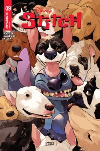 A new story arc begins from the hyper-creative team of writers Connor Ratliff and James III and artist Greta Xella! Stitch visits a planet that is all dogs, living in harmony. By the time he leaves, he has disrupted their dog society and they are all! Riled! Up!