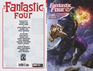 A TITANIC 60TH ANNIVERSARY ISSUE! The entire Kang bloodline is out to destroy every era of the Fantastic Four! How can Reed, Sue, Ben and Johnny hope to survive simultaneous attacks across their lifetimes by Rama Tut, the Scarlet Centurion, Kang the Conqueror and Kang's final descendant, the sinister Scion?!... Read More →