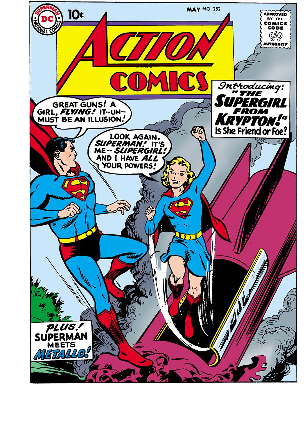 THE FIRST APPEARANCE OF SUPERGIRL! Witness the astounding origin of the Woman of Tomorrow in this classic tale from yesterday--as Supergirl, Kara Zor-El, makes her first appearance! All this and a story revealing the criminal creation of that monstrous mechanical menace, Metallo!