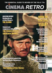 Our January 2024 issues see's Cinema Retro enter its 20th year in publication packed with amazing articles from the era of film we all love. Mike Bloomfield celebrates the fantastic world of collecting Mondo film posters, and Dave Worrall recalls the WWII action adventure Zeppelin (1971). We feature a Take... Read More →