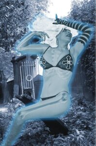 This Photocover is being Ghosted by Holly Golightly as Crypt Chick! Photo and Photo Magick by Jim Balent. This limited edition photocover comes bagged boarded and signed by artist Jim Balent and model Holly Golightly!