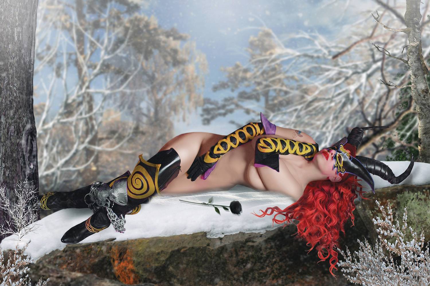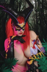 Photographed by Jim Balent and the photo magic of SGH with Holly Golightly as a Tarot enjoying a private moment deep in the Faerie Forest. This limited edition photocover comes bagged boarded and signed by artist Jim Balent and model Holly.
