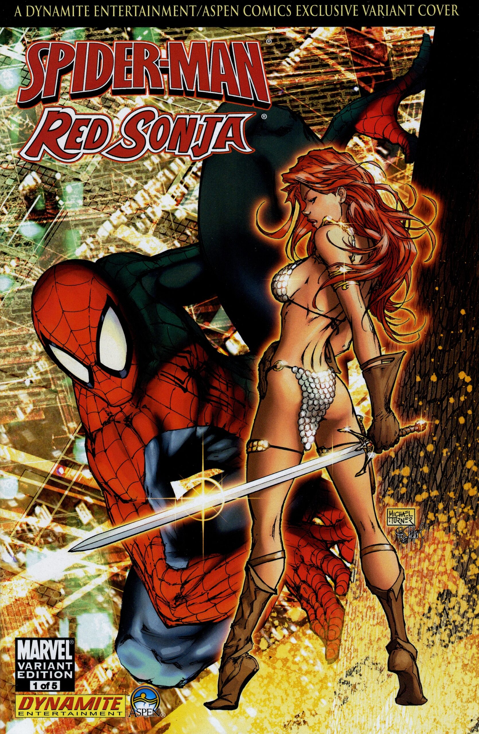 DF SPIDER-MAN RED SONJA #1 DYNAMITE ASPEN EXCLUSIVE BY MICHAEL TURNER CGC GRADED