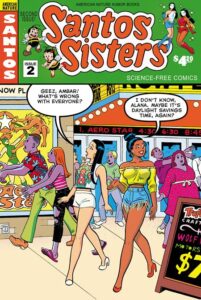 Why is Las Brisas being overrun with costumed criminals? Where are they coming from? Who is the mysterious Madame Sosostris, and what does she want with our beloved Santos Sisters? Find that out and more in Issue #3. Once again printed in full-color on your favorite decadent newsprint!