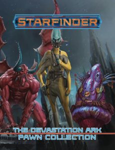 WriterPaizo Publishing,Key aliens and NPCs from The Devastation Ark Adventure Path come alive on your tabletop with The Devastation Ark Pawn Collection, featuring more than 100 creature pawns for use with the Starfinder Roleplaying Game or any tabletop science-fantasy RPG! Printed on sturdy cardstock, each pawn presents a beautiful full-color image... Read More →