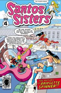 Why is Las Brisas being overrun with costumed criminals? Where are they coming from? Who is the mysterious Madame Sosostris, and what does she want with our beloved Santos Sisters? Find that out and more in Issue #3. Once again printed in full-color on your favorite decadent newsprint!