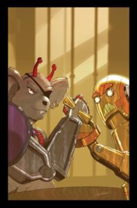 THE CLIMAX OF THE FIRST YEAR OF THE NACELLEVERSE IS UPON US . . . AND OUT OF THE ASHES, THE GREAT GARLOO RISES! Since the events of NacelleVerse #0, the orphaned alien Garloo has crossed the cosmos—gearing up with ROBOFORCE, racing alongside the BIKER MICE FROM MARS, witnessing the... Read More →