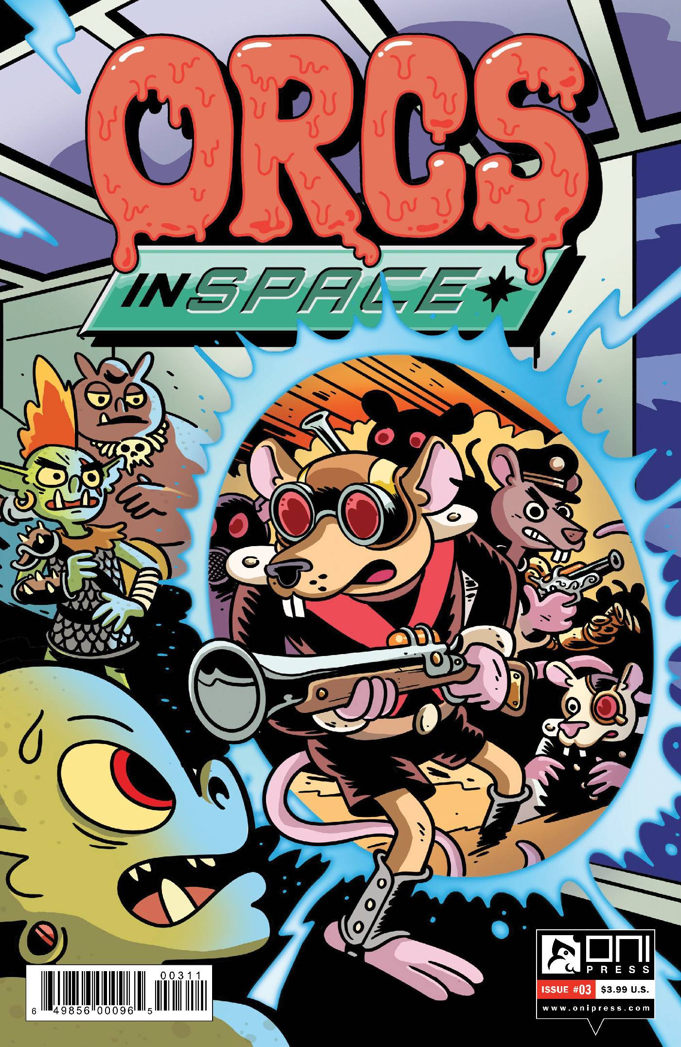 Double-issue debut! Gor, Kravis, and Mongtar are three Orcs trying to survive while on the run from everything and everyone on their homeworld. When the naive bureaucrats from StarBleep land on their planet, the orcs unwittingly steal the most advanced ship in the fleet and blast into the dankest reaches... Read More →